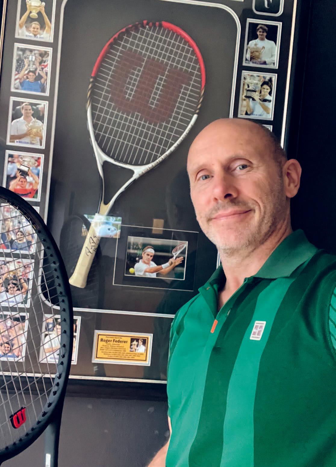 Roger posing with Roger Federer memorabilia at the local tennis club